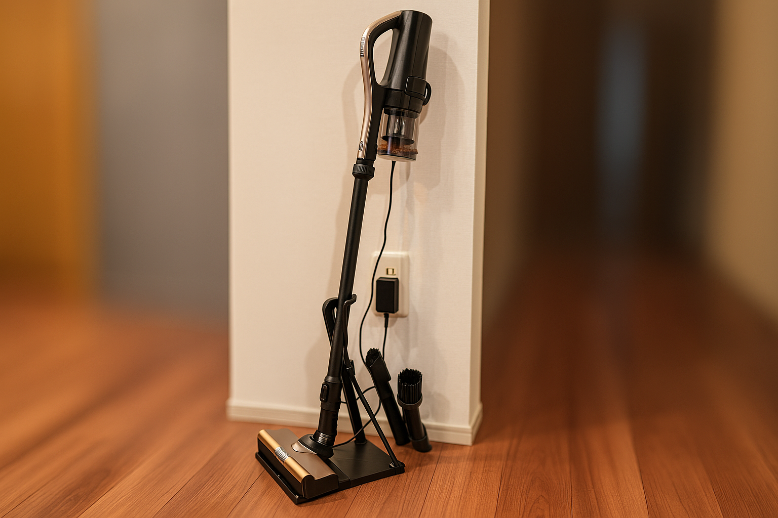 実は、掃除機の性能と同じくらい重要なのが「置き場所」です。 私はあえて別売りの「スティッククリーナースタンド」を組み合わせましたが、これが大正解でした。